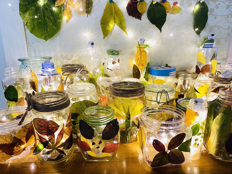 飞舞的秋叶,红红的柿子,是秋天独有的馈赠。孩子们巧动脑筋,大胆创造,绘制出一件件精美的秋日主题文创作品。摇曳的风铃、精美的树叶画,创意满满的盆栽……孩子们用巧手和创意装扮最美的校园秋景。