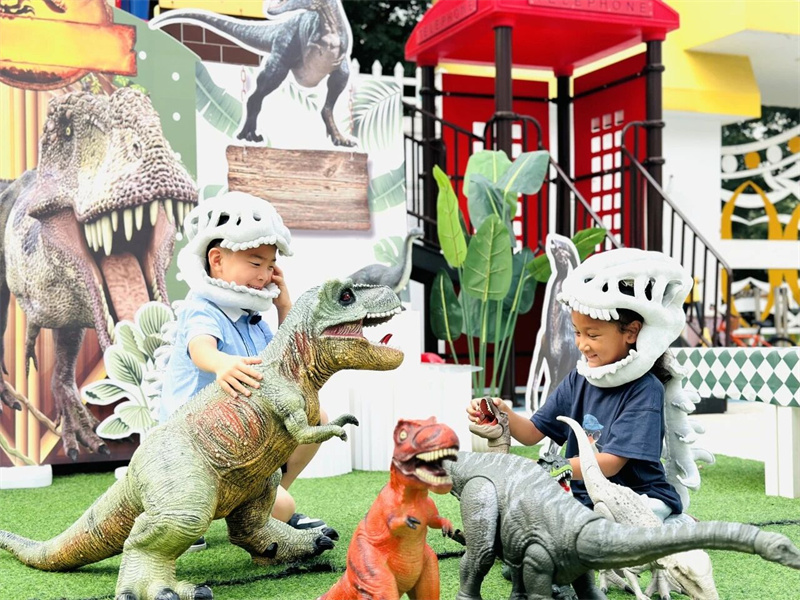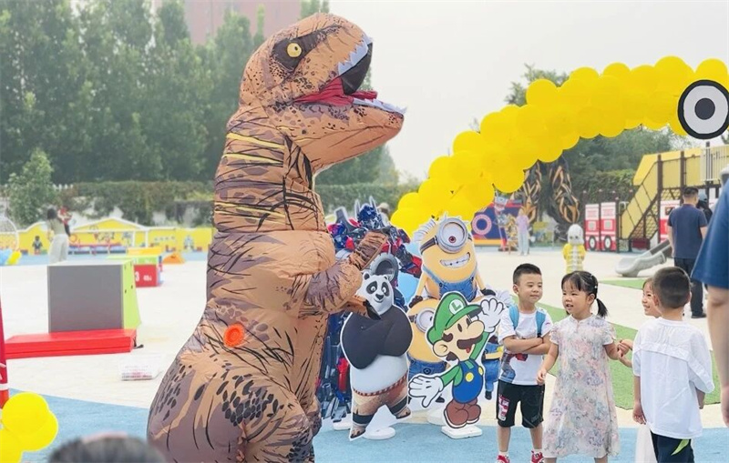 威风凛凛的变形金刚化身“童趣守护者”,与孩子们击掌、拥抱,机甲变身声与稚嫩欢呼声交织成科技与童趣的交响;奇趣跑酷赛道上,小勇士们跨越障碍、翻滚前行,每一滴汗水都在诉说“我能行”的成长宣言;侏罗纪探险世界里,孩子们轻抚恐龙鳞甲、聆听远古回声,双眼盛满对未知世界的好奇与向往。