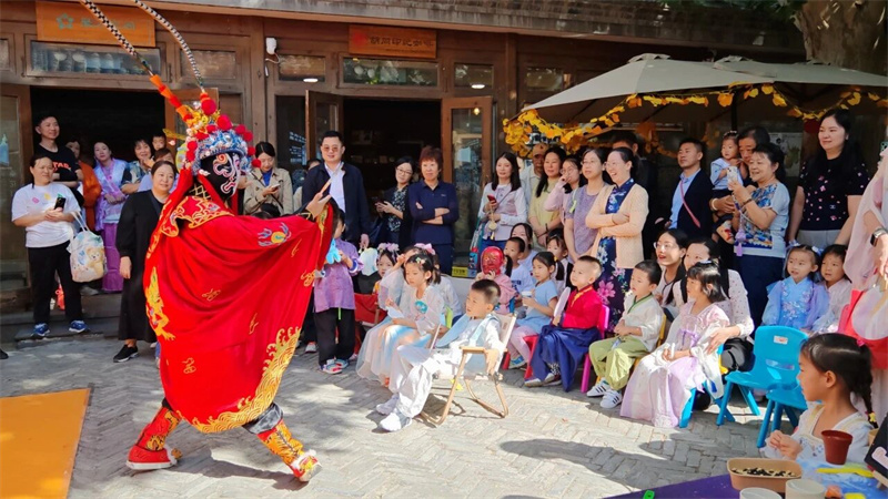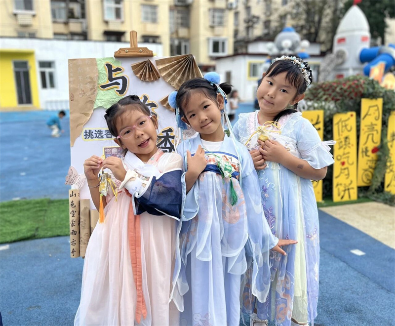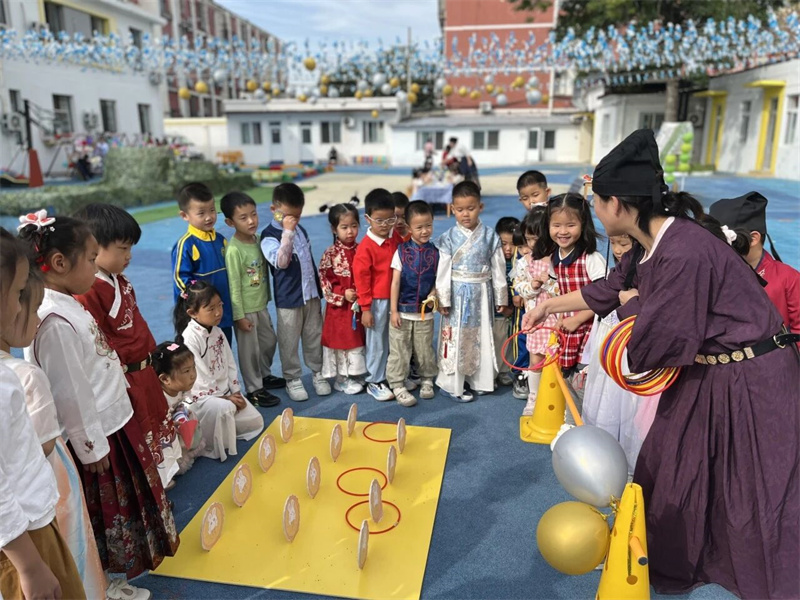 在古韵悠长的史家胡同博物馆,史家胡同精诚实验幼儿园开启了一场穿越时空的中秋雅集。孩子们凝神于“川剧变脸”的神奇变换,执手绘制“非遗漆扇”的流动色彩;在“后羿射日”的游戏中化身英雄,于“趣味投壶”的竞技里习得古礼。“亲子月饼坊”中,小手与大手共同捏合团圆滋味;“月灯解谜”场上,智慧的火花与温暖的灯光一同点亮。